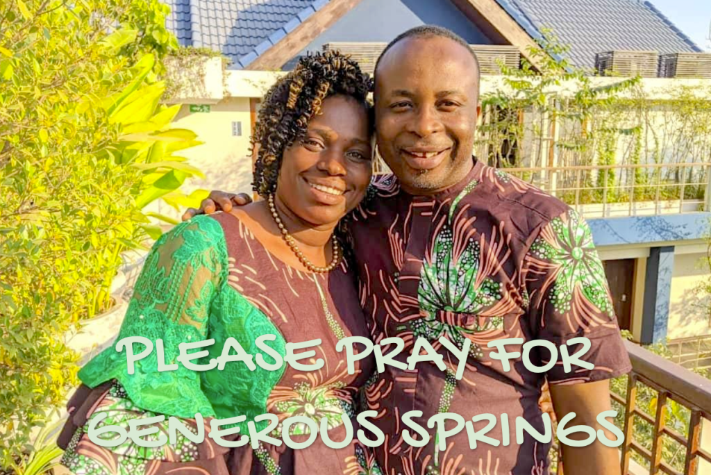 Generous Springs is a Nigerian non-governmental organization (NGO) and a ministry dedicated to raising up generous disciples of Jesus Christ who will multiply across Nigeria and throughout all of Africa, reflecting what God has already done in Acts 2 & 4, and 2 Corinthians 8:1-5.